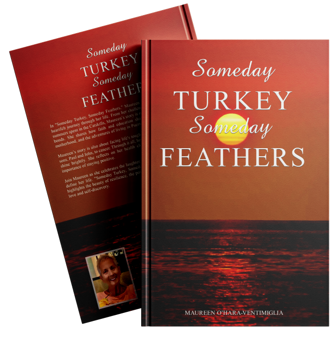 Through “Someday Turkey, Someday Feathers,” Maureen Ventimiglia takes readers on a heartfelt journey through her life—from growing up challenging in the Bronx to summer months in the Catskills—and refuses to let anyone forget the sometimes painful, sometimes joyful life lessons of her mother’s love, family bonds, shaping faith and education, joy and sorrow of motherhood, and adventures while living in Puerto Rico.